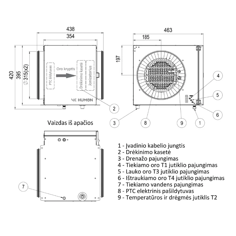 ● Tiekiamas oras drėkinamas iki 75% santykinės drėgmės dydžio.