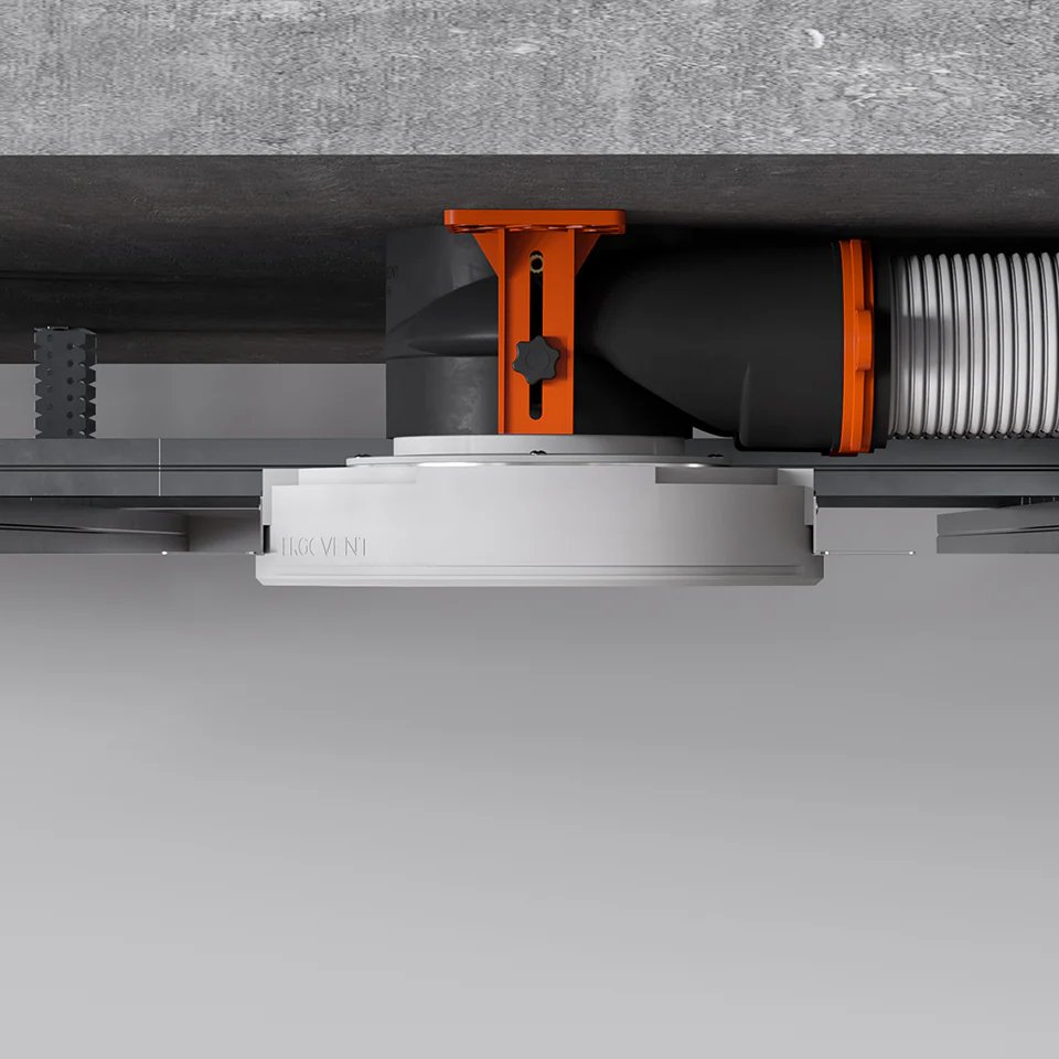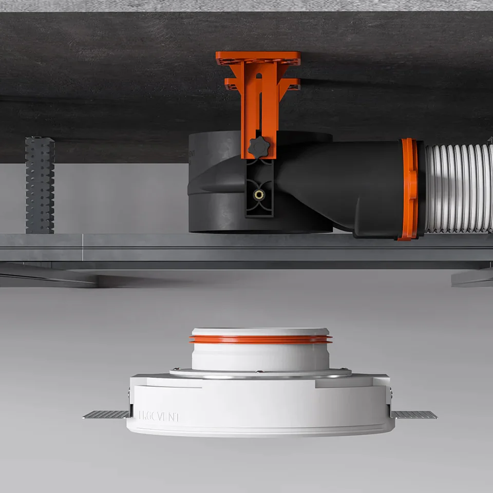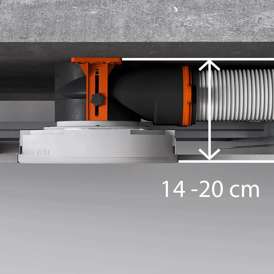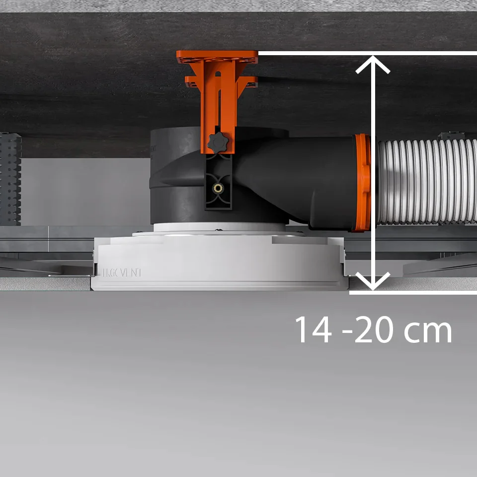 Vienas didžiausių šio sprendimo privalumų yra itin žemas profilis. Ergovent difuzoriaus pajungimo dėžutė leidžia montuoti priglaistomus difuzorius vos 14 cm aukščio erdvėje, o standartinius – net nuo 11 cm. Tai itin svarbu projektuojant interjerą, kai siekiama išlaikyti maksimalų lubų aukštį.