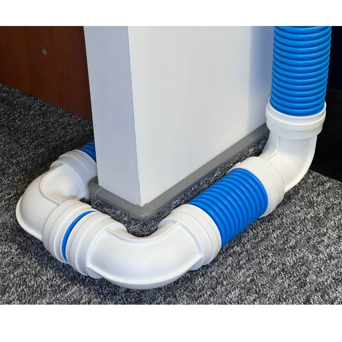 Plastikinė 90 laipsnių alkūnė lanksčiam ortakiui d75mm. Padidinkite savo darbo efektyvumą – lankstaus ortakio alkūnė yra būtina kiekvieno vėdinimo srities profesionalo detalė. Ji leidžia lengvai sujungti lanksčius 75mm ortakius 90° kampu.